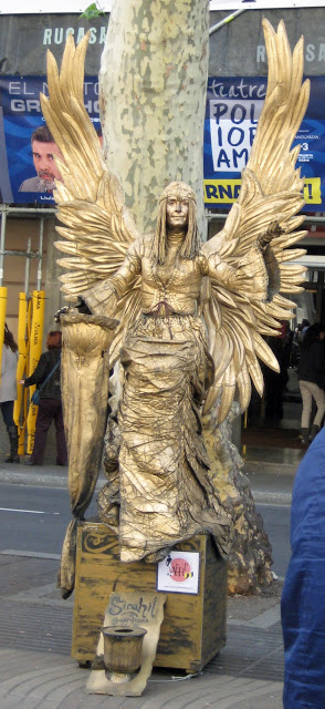 On any given day you'll find some of the most elaborate costumes being worn by street performers on Barcelona's famous La Rambla. Of all the places around the world I think our favorite street for walking and picking up on the flavor of a place is La Rambla. You can't beat it for people watching, strolling and eating.