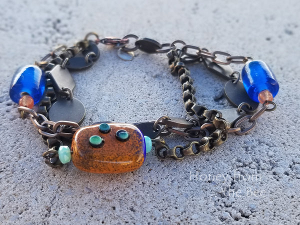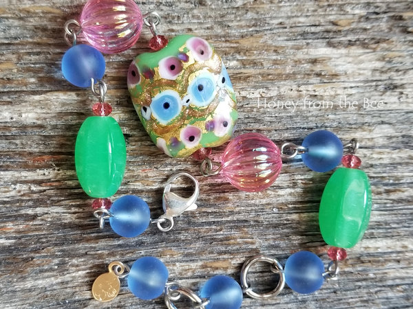 Handmade artisan bracelets made from semi-precious stones, lampwork and metalwork.