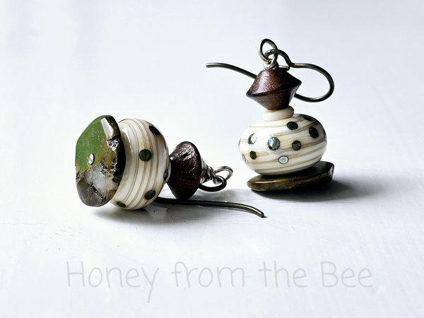 Lampwork earrings in blue-green and cream