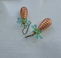 These artisan earrings dangle 1.75 inches from the top of the earwire to the bottom of the copper beads.