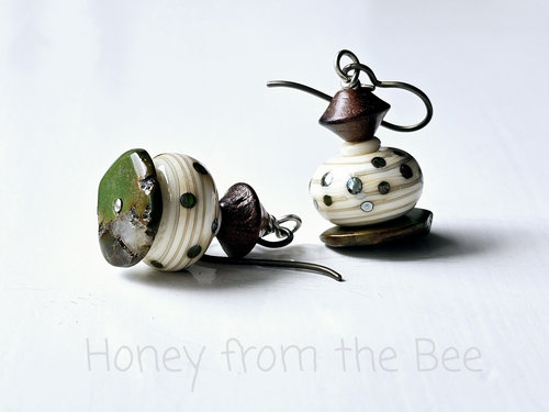 So you're a blue jean kinda gal? Then these lampwork, turquoise and wood earrings are your every day kind of pair! I'm calling them Spinning Upside Down as some days it can be crazy like that.