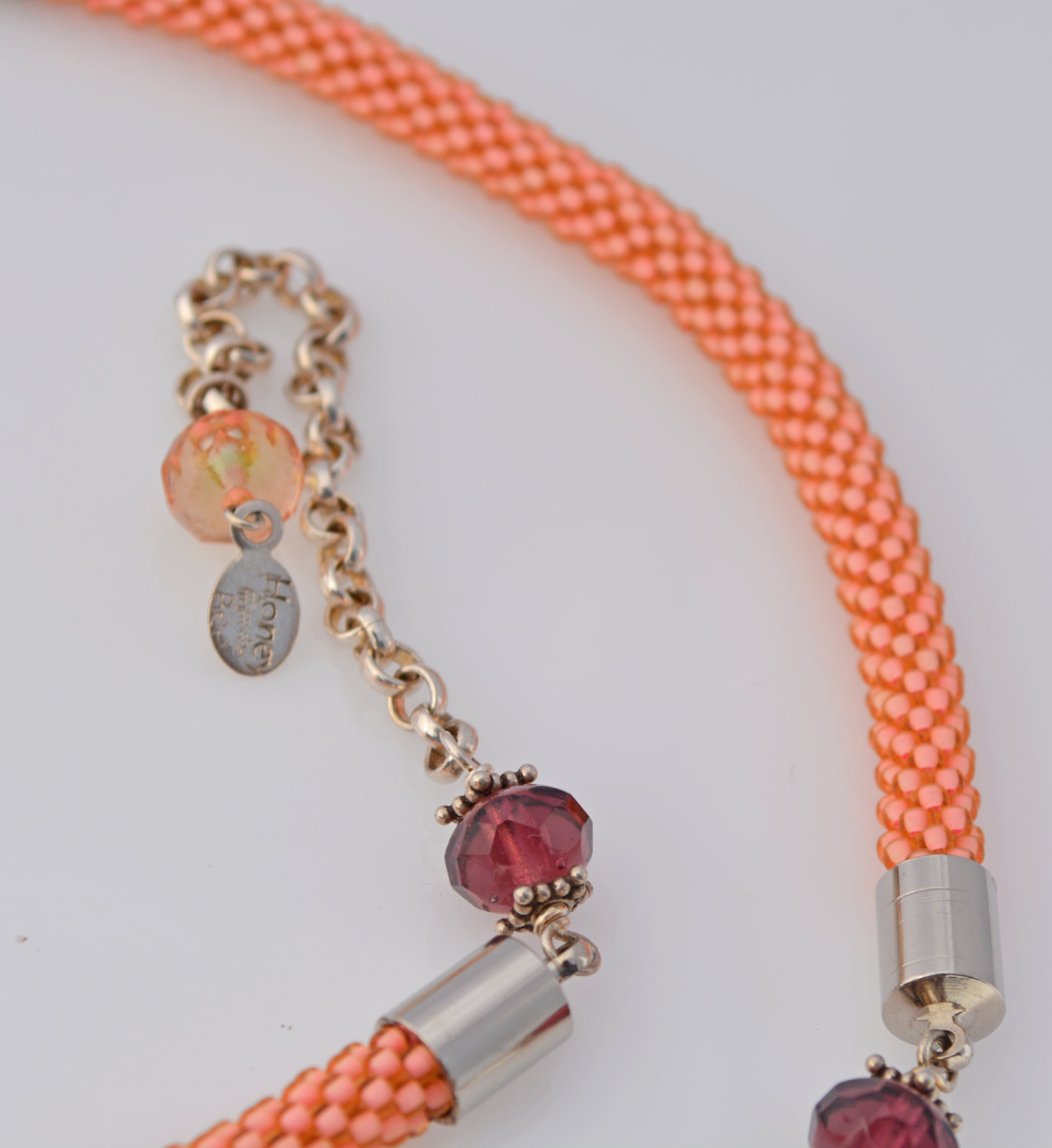 Napa Sojourn, an artisan necklace of salmon peach and purple beads, was so named as it reminded me of the sun setting over the vineyards of Napa Valley.