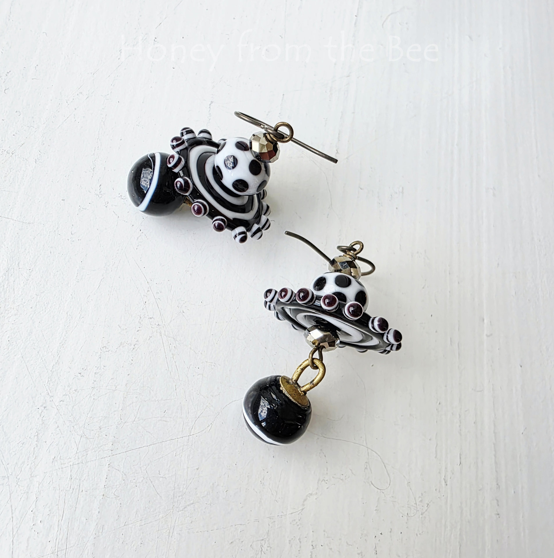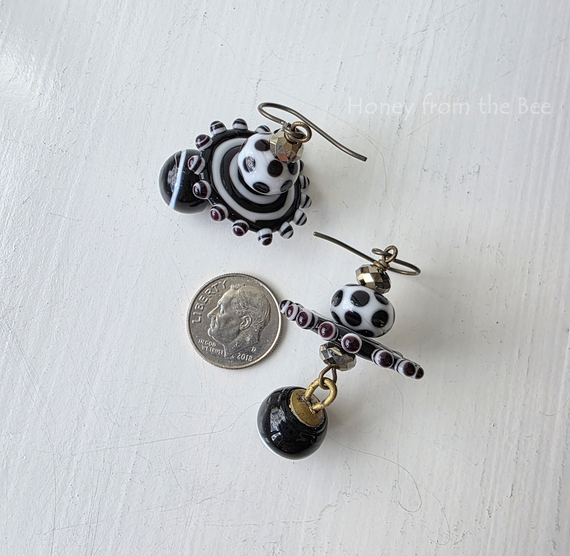 These lovely earrings dangle 2" from the top of the earwire to the bottom of the button dangle