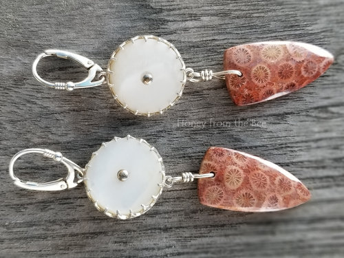 These dangle about 3 inches from the top of the earwire to the bottom of the fossilized agate dangles.