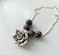 Bali silver rose and Mexican Red Snowflake Jasper combine in this feminine necklace that would be a lovely gift for someone special.