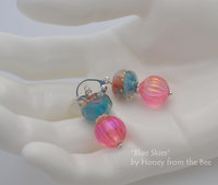 Clear blue skies and sunlight sparkling on the water just makes everyone happy! That's the feeling I want you to have with this pair of sky blue and pink lampwork earrings.